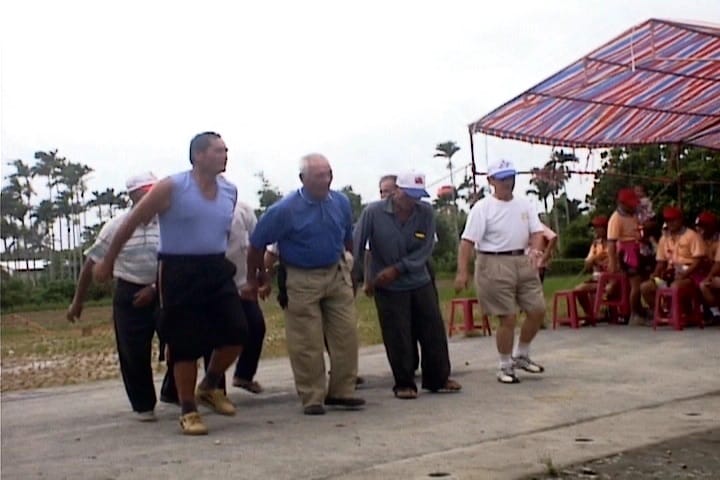 說到歌舞比賽,順帶提一下賽前的練習準備。豐年祭開始前,各參賽年齡階層及婦女組就私下安排練習時間,豐年祭期間也抽空練習。不過年輕人往往在外地工作,到了豐年祭才回鄉,比賽日要唱哪首曲子、跳什麼樣的動作,大多是這幾天集合起來,由擅長舞蹈的同伴自編後現場指導其他人,以至於正式比賽時,常有人不熟悉動作或跟不上節拍。但不會因此招來訕笑,大家反而會覺得很有趣,就像「搞笑」舞蹈或短劇一樣具有效果。