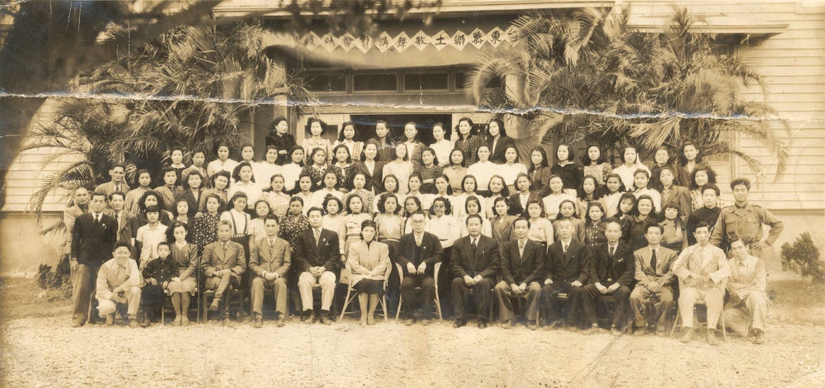 1949 年左右1 筆者尚未找到與該講習會直接相關的文獻。高棪表示,1949 年時與林樹興等人應臺灣省教育會之邀,前往臺北縣角板山及烏來鄉、新竹縣竹東、尖石及五峰鄉、臺東縣大王鄉(應為大武鄉之誤)等地採集原住民歌舞,並與臺東縣長黃式鴻合作(參見高棪 1984:117-118)。「臺東縣鄉土歌謠講習會」應該就是當時雙方的合作成果。高棪於 1949 年隨國民政府來臺,黃式鴻於 1950 年 8 月卸任縣長,講習會的時間當在此期間。江映碧(2004:18 、 82)表示高棪等人的調查是在 1954 年;然高棪本人則表示是 1949 年,並促成 1952 年的「改進山地歌舞講習會」(1984:118),1949 年也符合參加講習者的報導,故較為可信。,臺東縣政府舉辦了「臺東縣鄉土歌舞講習會」,研習地點在臺東女子中學,為期大約半個月,受訓者為來自臺東縣各地十幾歲年紀的漢、布農、排灣、阿美等族少女總計六十餘人,負責教授歌舞的是自中國大陸來臺的高棪與出身臺灣南投的李淑芬兩位舞蹈家,再加上新竹師範學校的音樂教師林樹興教授歌唱。馬蘭阿美參加的有林振鳳等五位少女,乃是阿美籍的里長所指派,她們後來一直都是部落裏歌舞表演的臺柱型人物。講習會上所學的,她們稱之為「民國的舞」或是「 kuaping(官兵)的歌」,由於時間久遠,目前僅記得三首,包括〈薔薇處處開〉、〈青春舞曲〉與〈巴安弦子──美麗的文化〉。講習會的訓練結業後,全體師生與縣長黃式鴻等地方政要於臺東女中合影留念,並在「臺東劇場」舉行成果演出。